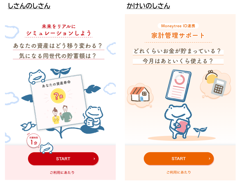 ここで役立つのが、家計管理サポート「かけいのしさん」と資産寿命シミュレーション「しさんのしさん」。まず「かけいのしさん」で毎月の収支を入力し、家計のバランスを見える化。次に「しさんのしさん」で老後資金や教育費を試算し、必要な積立額を逆算します。