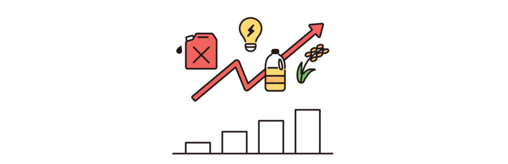 インフレとは、モノやサービスの値段が長期間にわたって上がり続ける現象です。値段が上がると、お金の価値は下がり、同じ金額で買える量が減ります。原因はさまざまですが、代表的なのは「需要が増える」「原材料や輸送コストが高くなる」「通貨の量が増える」などです。世界的な原油価格の上昇や円安が続く状況では、ガソリンや食料品の値段が上昇しやすくなります。こうした仕組みを理解しておくと、なぜ家計が苦しくなるのかが見えてきます。インフレ対策を考えるうえで、まずはこの基本を押さえることが重要です。