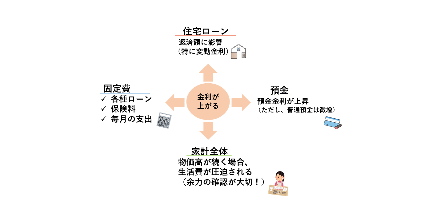 金利が上がるというニュースを聞いて、「難しそう」、「自分の生活には関係あるの?」と思う人もいるかもしれません。ですが、金利の変化は、私たちの家計に少しずつ影響してきます。特に影響を受けやすいポイントを知っておくと、これからの備えを考えやすくなります。